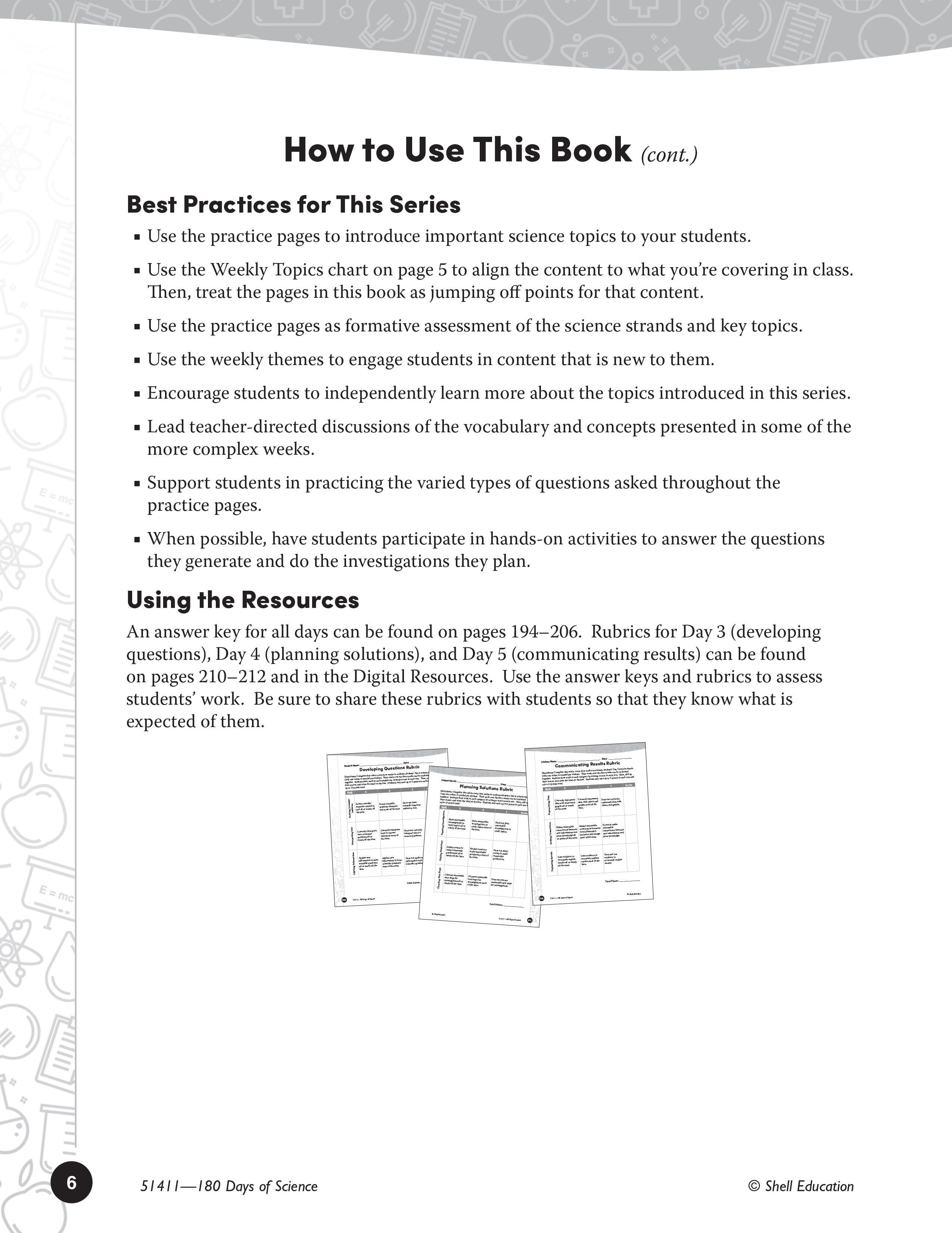 - Provides educators with easy-to-use daily science practice through multiple-choice questions, constructed response questions, scenarios, and scientific data