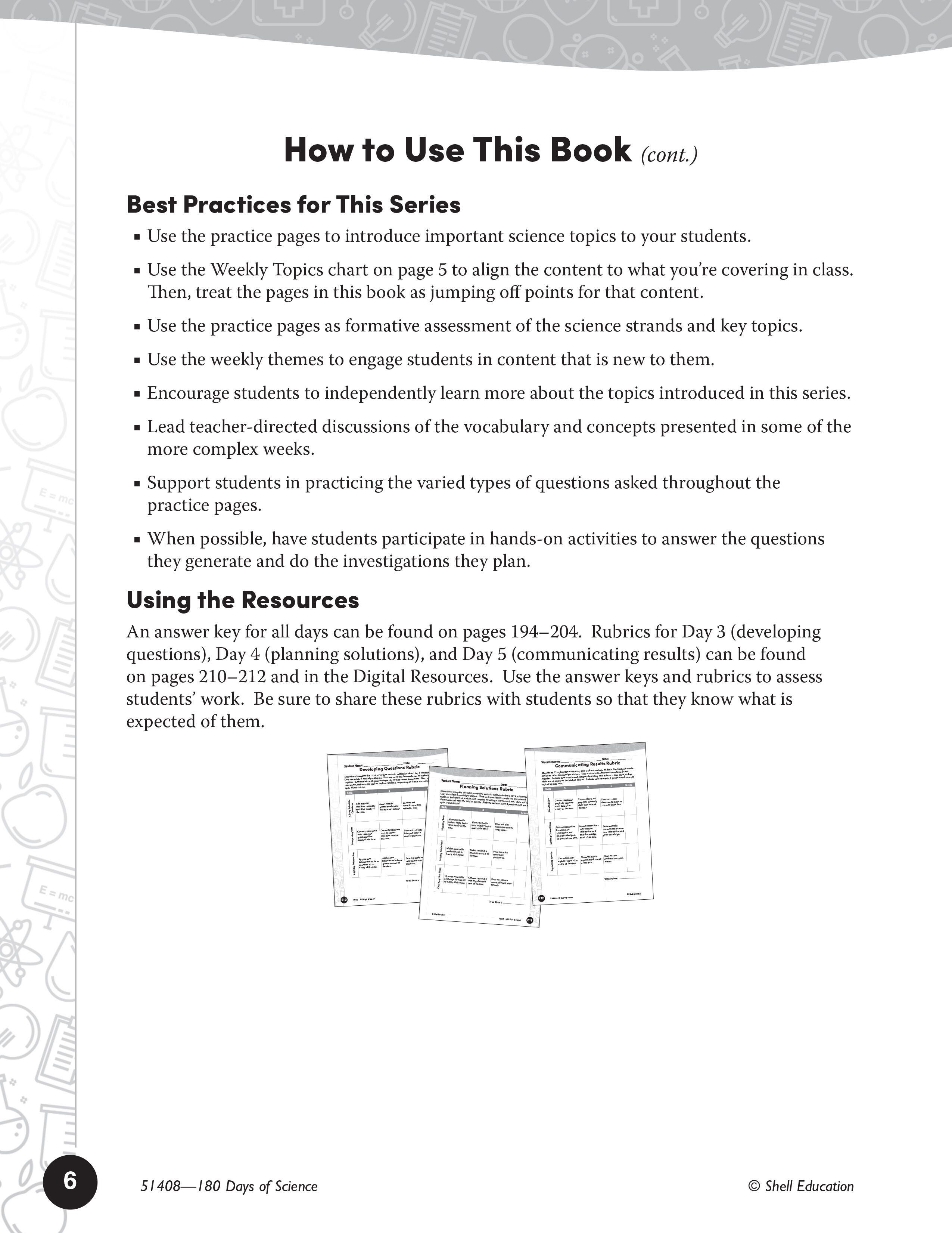 - Provides educators with easy-to-use daily science practice through multiple-choice questions, constructed response questions, scenarios, and scientific data