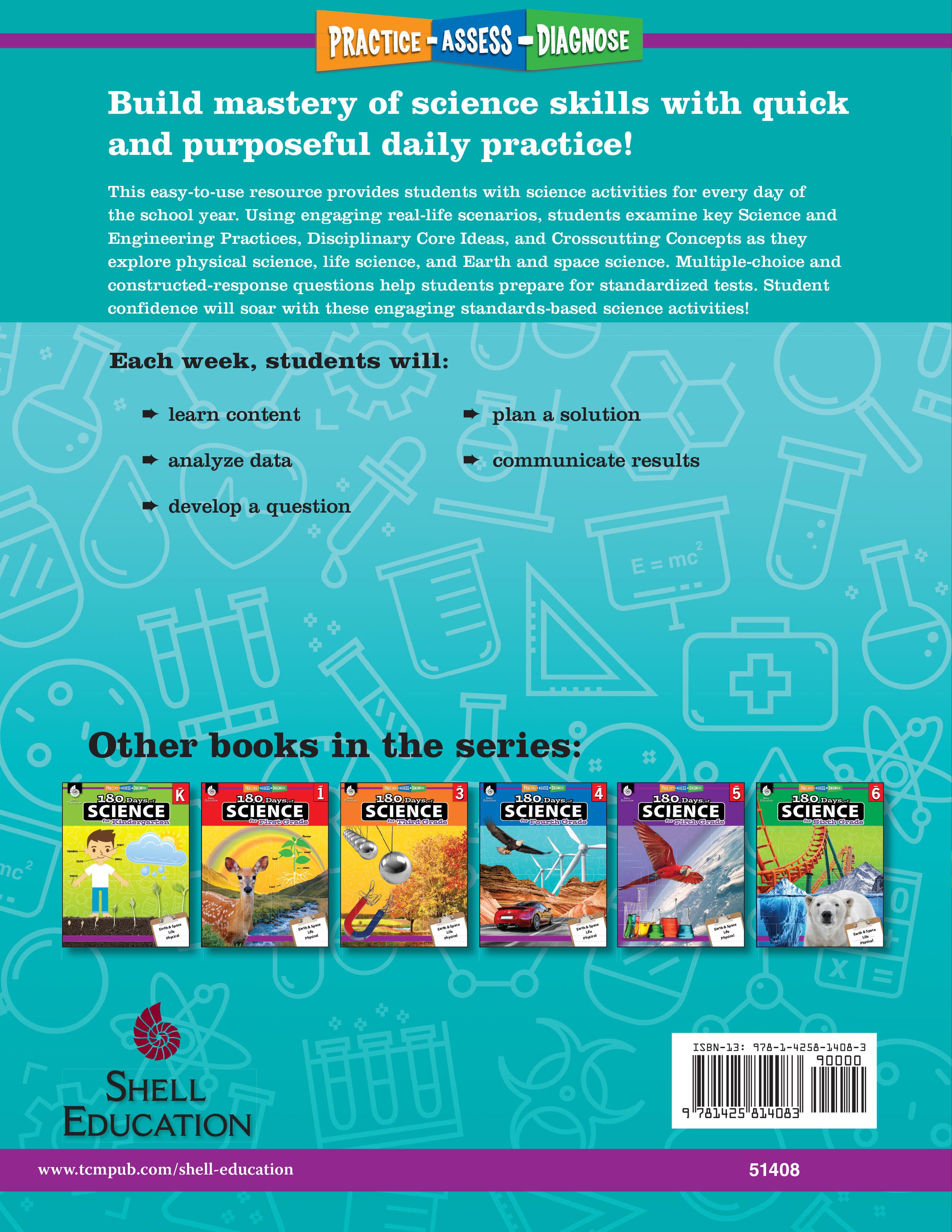 180 Days™: Science for Second Grade provides students with the skills they need to think like scientists! This invaluable classroom book provides teachers with weekly science units that build students' content-area literacy and are easy to incorporate into the classroom. Students will analyze and evaluate scientific data and scenarios, improve their understanding of science and engineering practices, answer constructed-response questions, and increase their higher-order thinking skills. Each week covers a particular topic within one of three science disciplines: life science, physical science, and Earth and space science. Aligned to Next Generation Science Standards (NGSS) and state standards, this resource includes digital materials.Features