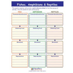 Complete, easy-to-use and engaging, the Fishes, Amphibians & Reptiles Learning Center is ideal for the instruction and review of this key, standards-based concept. Designed for either teacher-directed instruction or independent use by groups of 2 to 4 students, the Learning Center provides complete, leveled coverage of this curriculum-aligned topic, making it perfect for differentiated instruction. To use, the students first work individually or in pairs using the 4 laminated Visual Learning Guides provided on the topic. The guide provides a graphic, easy-to-follow overview of the concept; “Write-On/Wipe-Off” activities and graphic organizers; and a set of guiding, assessment review questions. They then form in a group to play the Curriculum Mastery Game included for cooperative or competitive review and reinforcement of the concepts. Packaged in a durable pouch, the Learning Center is a ready-to-use resource for the classroom, after school and summer school programs or at home for test preparation, practice and review! Grades 6 to 10.Features