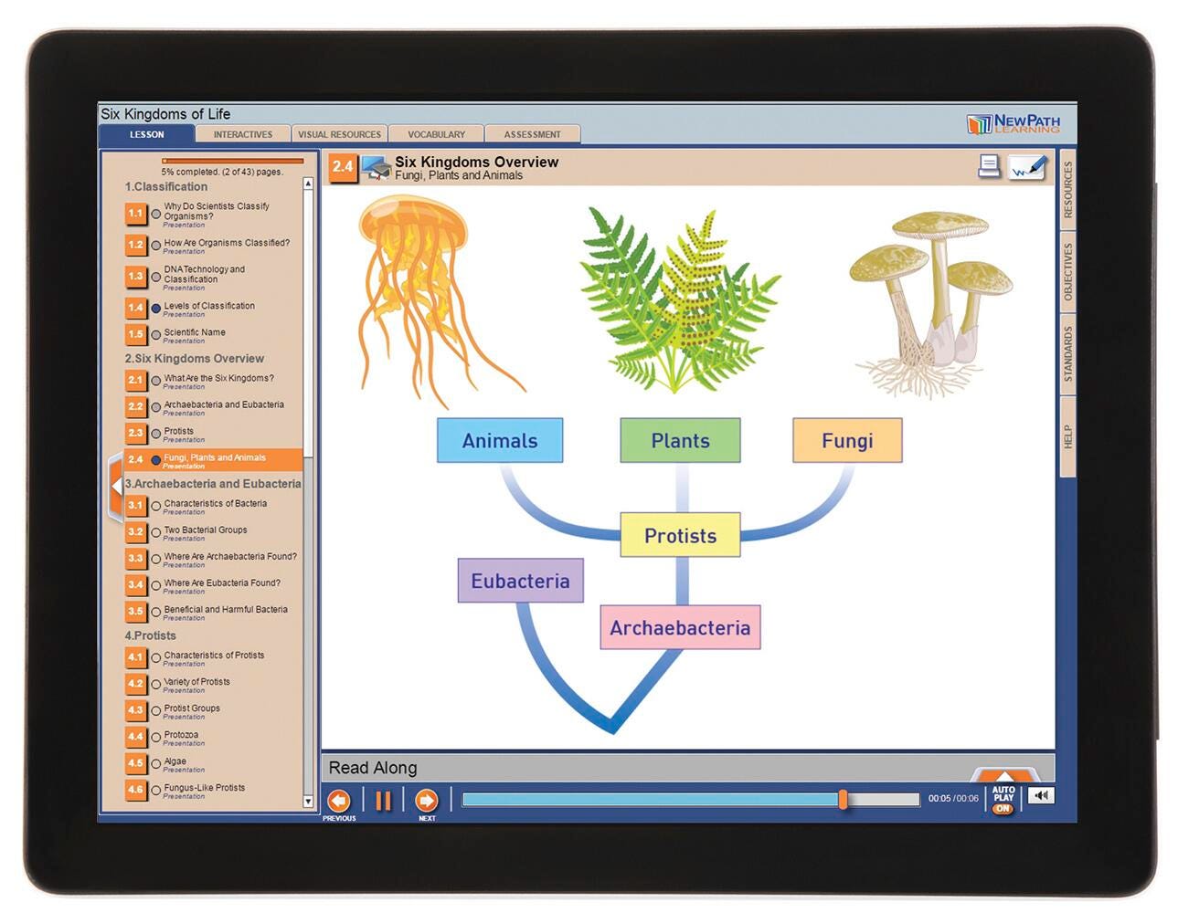 The NewPath Learning Six Kingdoms Curriculum Mastery Class-Pack Game for Grades 5 - 9 is written by teachers using research-based principles and is extensively classroom-tested to ensure efficacy. Contains enough materials for an entire class of up to 36 students, including 25 sets of 30 standards-based review cards and 12 double-sided, laminated game boards. Also includes comprehensive Teacher Planning/Resource Guide and a free 1-year Premium Class Online Subscription to access interactive content, activities and assessments. Covers: The World of Life Science; Diversity of Life; Ecosystems, Food Chains & Food Webs; Evolution & Classification; The Six Kingdoms of Life; Evolution & Interaction of Living Things; Bacteria & Viruses; Protists & Fungi; Microorganisms I; Microorganisms II; Introduction to Plants; Plant Structure & Function; Plant Processes; Plant Reproduction; Plant Responses & Adaptation; Plants With & Without Seeds; Introduction to Animals; Invertebrates I; Invertebrates II; Vertebrates I; Vertebrates II; Sponges, Cnidarians & Worms; Mollusks, Arthropods & Echinoderms; Fishers, Amphibians & Reptiles; and Birds & Mammals.Features