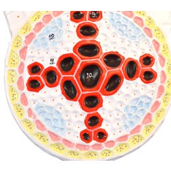 This Dicot Root Model from Eisco Labs is a vibrantly colored, hand-painted 3D model with detail that shows the inner anatomy and vasculature of a dicot root. This sturdy PVC plastic model is greatly magnified to provide an excellent visual for studying and testing. A key card highlighting the important anatomical features is included. Its plastic base measures 13 x 10 x 1 inches.Features