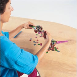 - Five hundred color counting chips with metal edges for experimenting and sorting