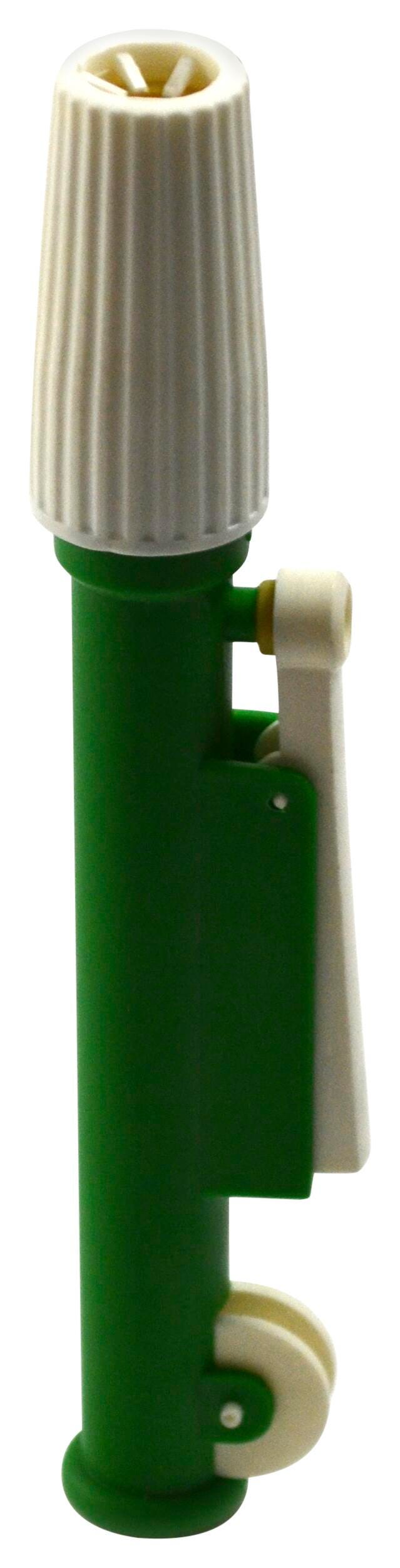 This Green fast-release pipetting pump device with 10 milliliter (mL) capacity offers precise pipetting and super-fast emptying with a simple touch! The knurled thumb wheel can be rotated to draw up or dispense liquids, while the releaser may be pushed in for zip-quick emptying. The molded chuck has a silicon rubber collect inside to hold various pipettes of standard sizes. Entire pipette pump also resists acids and alkalis, and can be quickly assembled for thorough cleaning.