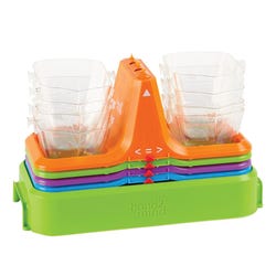 The hand2mind Nestable Bucket Balance encourages children to explore measurement and weight and features an efficient, compact design. Equivalency markings allow students to assign less than, greater than, or equal to symbols to their balance setup so they can demonstrate mass equivalency. Balances come in a set of 4. ⚠WARNING: Choking Hazard - Small parts. Not for children under 3 years.Features