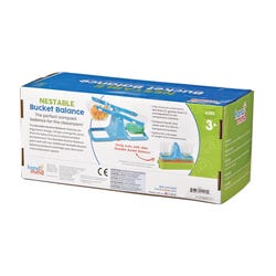 Nestable Bucket Balance encourages children to explore measurement and weight and features an efficient, compact design. Equivalency markings allow students to assign less than, greater than, or equal to symbois to their balance setup so they can demonstrate mass equivalency.- CHOKING HAZARD! Small parts. Not for children under 3 years.
