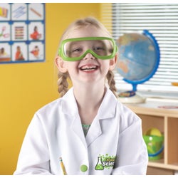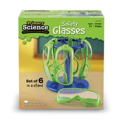 Learning Resources Primary Science Safety Glasses are made for lab safety with a strap-free design and adjustable arms that fit easily over eye glasses. Sold as set of 6 with a stand for hanging and organizing. Best for Grades PreK to 2.Features