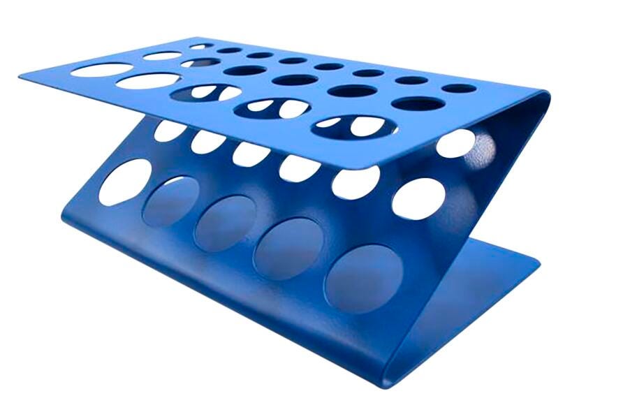 This complete features a test tube/lab instrument rack that will hold up to 17 objects. (8) small holes have a diameter of 12mm, (6) medium holes have a diameter of 18mm, and (5) large holes have a diameter of 25mm. The rack is powder coated and chemically resistant. Tripod is cast metal and is 190 millimeters in height and has an inner diameter of 7-1/2 centimeters and an outer max diameter of 12 centimeters. Wire mesh is a square with 12 centimeter sides and a 8 centimeter diameter heating surface. Ring clamp with boss head has and inner diameter of 76 millimeters and an outer diameter of 91 millimeters, the bosshead can accept rods up to 20mm in diameter. Burette clamp holds burettes with diameters up to 22 millimeters (usually 100 milliliter burettes) and is spring loaded with one-hundred percent powder coated parts.