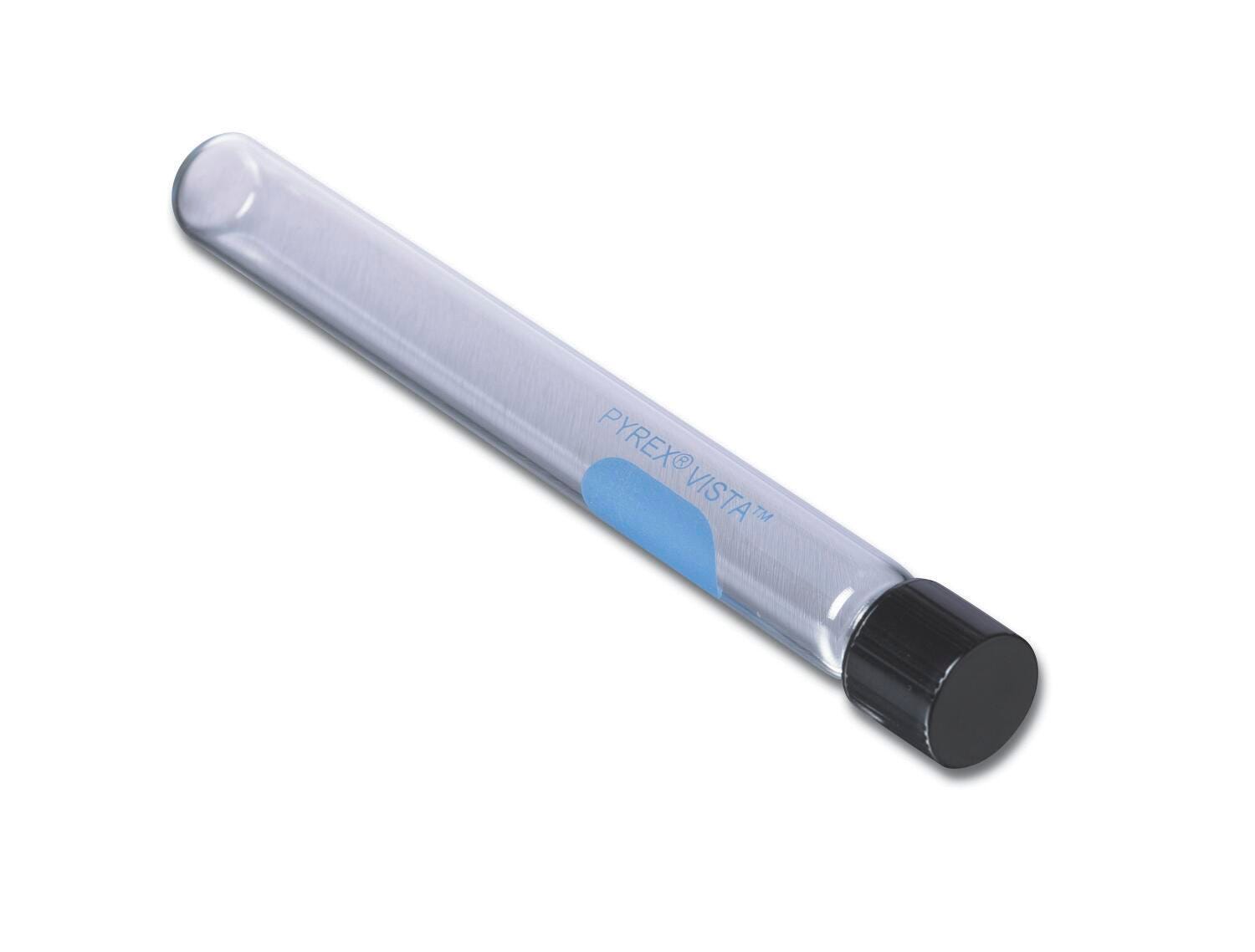 Pyrex Vista Screw Cap Test Tube measuring 13 mm x 100 mm features blue enamel marking spot that offers great surface for pencil notations while pencil marks can be easily erased. Culture tube with a capacity of 9 ml is provided with deep-form phenolic cap to facilitate handling and sealing after autoclaving. Screw cap test tube is sold as 50 per pack.Features