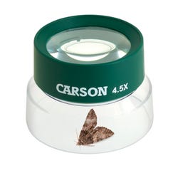 The BugLoupe from Carson is a 4.5x pre-focused stand loupe magnifier that is perfect for viewing intricate details of everyday objects like bugs, rocks, plants, fabrics, coins, stamps, reading fine text and more. The 2.65 inch acrylic lens diameter offers a wide viewing area allowing for endless possibilities of what you can discover.Features