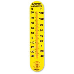 Go beyond hot and cold with this easy-to-read wall-mounted thermometer. Assign a different student each day to read the temperature in Celsius and Fahrenheit. For indoor or outdoor use. Recessed tube prevents accidents. Temperatures range from -40 to 50 degree Celsius and -40 to 120 degree Fahrenheit. Ages 6 and up.Features