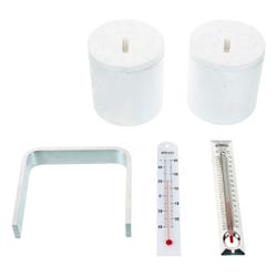 The heat transfer kit contains all the items needed (2 Styrofoam calorimeters, 1 aluminum heat transfer bar, low range thermometer, high range thermometer, and apparatus guide) for demonstrating and learning about thermal energy and heat transfer. This product is a great way to introduce students to the concepts of thermal energy and heat transfer in a visually and kinesthetically effective manner.Includes:
