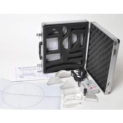 This is an excellent and economical set for introductory ray optics. The laser ray box projects one, three, or five parallel bright beams and is equipped with a momentary switch for safety. A vinyl template with a degree circle and a linear scale forms the optical disk, and the set includes seven clear acrylic optical elements and a mirror with adjustable curvature for investigating refraction, lenses, prisms and mirrors. The bottoms of the acrylic elements are frosted to show the ray paths inside them. The set also includes a manual and storage box.Features