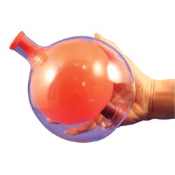 Frey Scientific's Harbottle lets you discover air pressure like never before. With just a balloon and a bottle, it has the ""WOW"" factor you have been searching for! Simply place the balloon into the opening of the bottle and stretch the mouth of the balloon over the mouth of the bottle. Blow into the balloon and, when it is fully inflated, close the bottom hole of the bottle with a stopper. The normal air pressure from outside allows the balloon to stay inflated! No twisting or tying required. Astonish your students even more with the strength of air pressure by filling the balloon with water before releasing the stopper! Excellent teaching tool for introducing pressure and discussing its applications, such as vacuum cleaners, flight, pumps, weather, and even how we breathe. Includes glass bottle, two balloons, rubber stopper, and Teacher's Guide with background information and activity suggestions for your students. Measures 5 inches diameter. Grades 5 and Above.