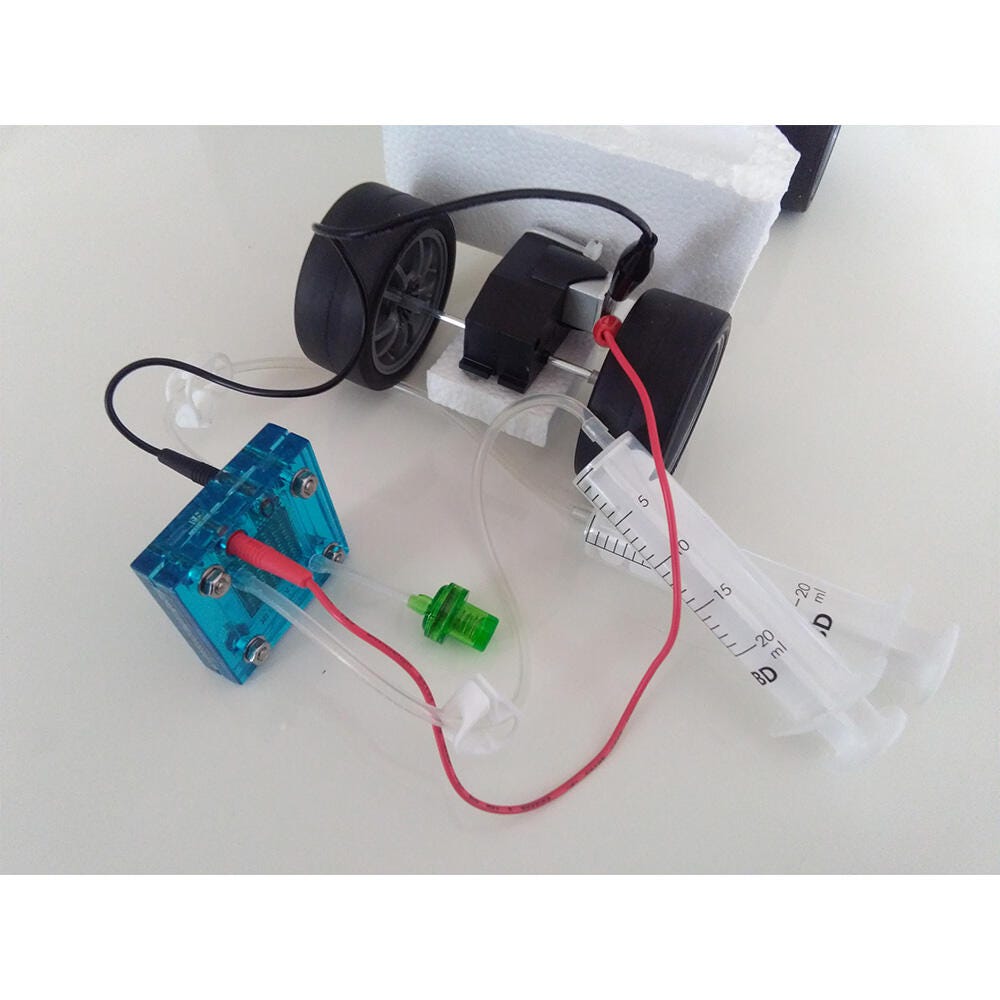 Horizon DIY Fuel Cell Science Classroom Pack gives students the opportunity to design and fabricate a car that is powered by H2. First, they will sketch out their ideas on paper in order to help them come up with a plan of how they want to design their vehicle. Next, they will need to source materials that are strong enough to hold the components of t he fuel cell system, but light enough to allow the car to travel as far as possible. Finally, they will build their prototype and test it in a race against others to see which design is able to travel the furthest. Also, consider the DIY Chassis Kit as an ADD-ON (RESK-02C-1)Features