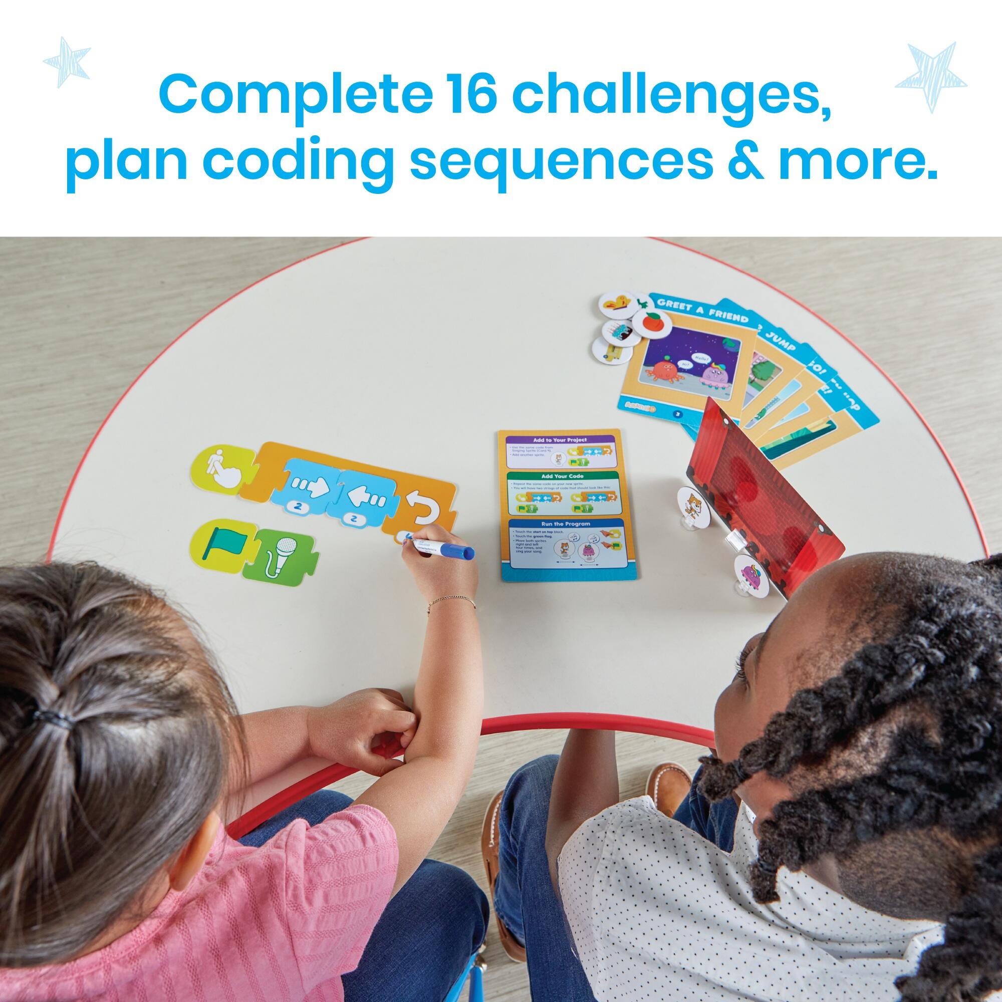 • Complements the ScratchJr app with 16 engaging coding challenges