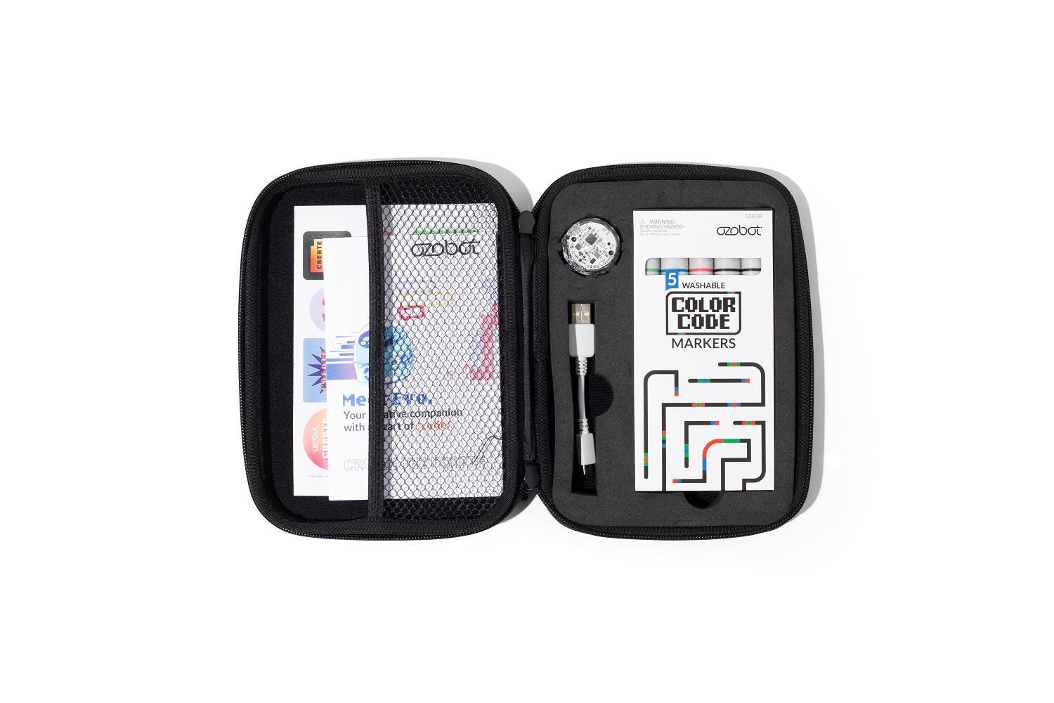 The Evo Entry Kit from Ozobot prepares delivers coding and creativity to the home and classroom, no previous coding experience required. Students can learn to code the Ozobot Evo in two ways: online with Ozobot Blockly or screen-free with Color Code markers. These dual-tip markers allow you create paths and Color Codes that the Evo reads using sensors. Color Codes and Ozobot Block activtities are great for teaching basic CS skills, critical thinking, and debugging. The Ozobot Classroom includes more than 600 coding lessons in five skill levels, from beginner to master so students of all ages and levels can build core STEM/STEAM skills.