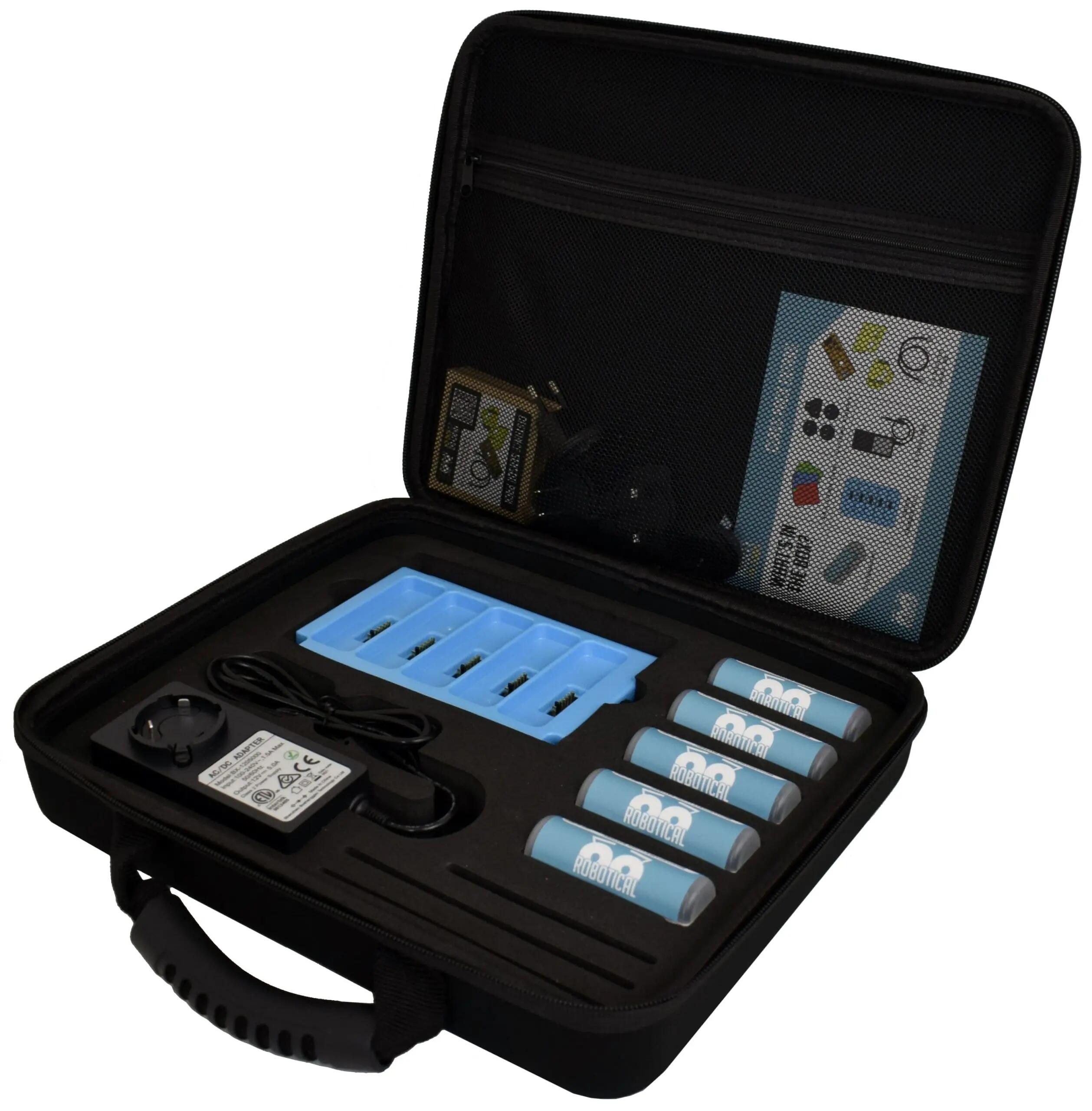 Robotical's Marty the Robot helps you learn about robotics and coding in a fun and engaging way. You can program Marty in languages in simple blocks in Scratch to Python, learn about sensors, and expand your robot. Marty can walk, dance, turn, sidestep, and kick with his unique arm and leg design. He has an array of sensors including position, tilt, proximity, force, and a built-in speaker, Marty can talk and play sounds, feel, and even shake hands. Comes with an IR obstacle sensor and color sensor as standard. Program Marty using MartyBlocks Jr, MartyBlocks, Python, Raspberry Pi, and ROS. Add extra sensors like temperature, noise, light, and more to expand your customization. The bundle of 5 comes with 5 Marty's and accessories plus a box of classroom extras.
