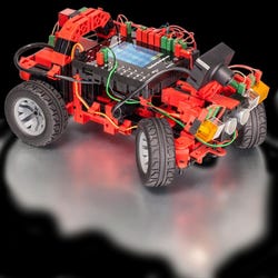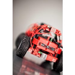 Build and program your own “car of the future” to amaze and delight the classroom! The Robotics Add On: Autonomous Driving set combines with the Robotics Base Set to allow students to discover a variety of exciting technologies essential to our everyday lives. From the automatic light to a lane departure warning system, cruise control and an automatic parking feature – the model guarantees excitement in the classroom. The building set includes a differential, as well as additional wheels, LEDs and a servo motor for the steering. The Robotics Add On: Autonomous Driving also includes seven experiments with associated solutions.Features
