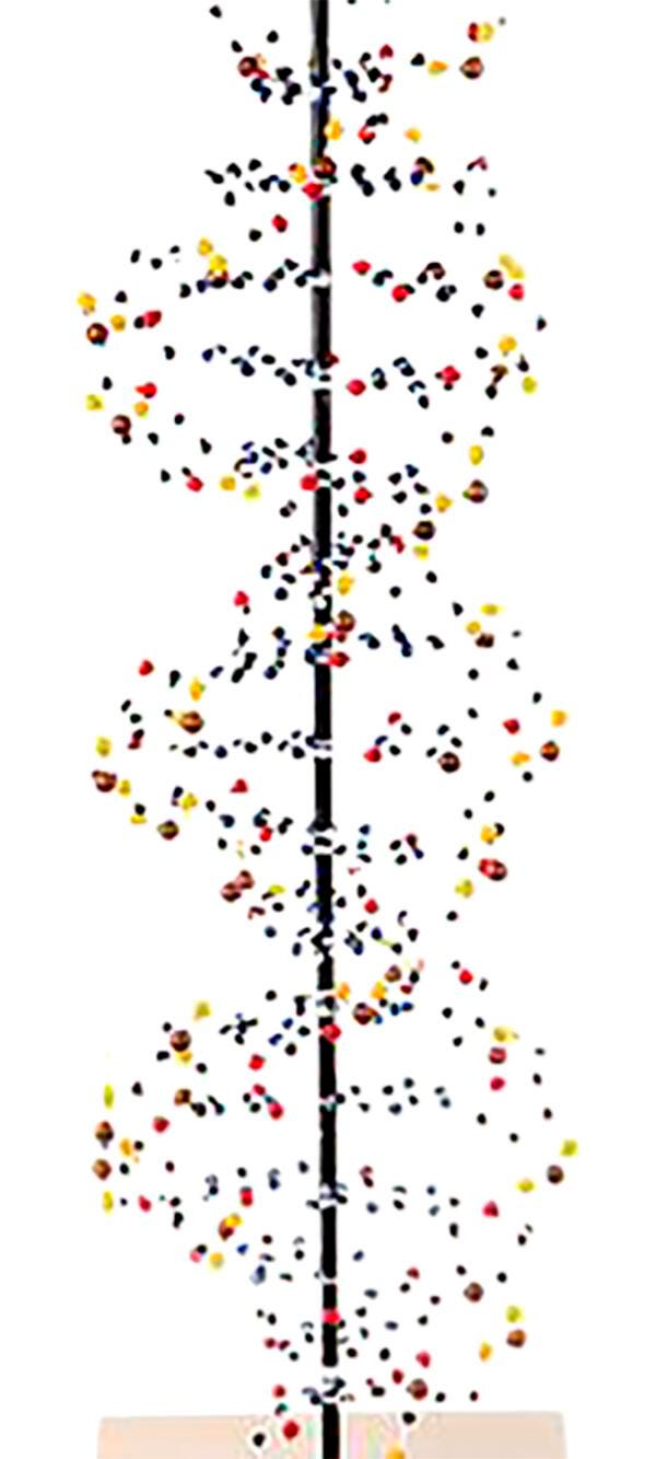 Students construct this DNA model from 144 plastic DNA building pieces including six different repeated molecular shapes, collectively depicting sixteen nucleotide base pairs of DNA (8 Adenosine Thymine and 8 Guanine Cytosine). The base pairs and the sugar and phosphate units are each manufactured as single plastic units. Nine molecular parts per nucleotide pair snap together using pop-in beads. The model is easily assembled, disassembled, and rebuilt, enabling extended use. May be painted either prior to or following assembly.Features