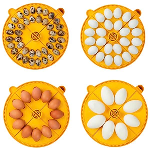 - 24 standard hen egg capacity or 12 large duck/hen/turkey eggs with the 2 quadrant sets supplied