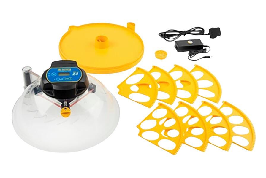 The popular Maxi 24 Advance has been redesigned to hold more eggs and be even more flexible. The single ring egg disk has been replaced by an innovative mix and match quadrant system available in 4 variants allowing users to incubate more eggs of the same size or eggs of different sizes at the same time. Perfect for those new to incubation it provides the convenience of automatic turning with the reassurance of digital alarms and count-down to hatch day. Includes one 24 Egg Digital Incubator. Like the Maxi II Advance, the Maxi 24 Advance is menu driven and extremely easy to use, just program the length of incubation for your species and the micro controller holds the correct temperature, turning and length of incubation with no further input. The display counts down each day to tell you when eggs are due to hatch and turning will stop automatically 2 days prior to hatching. All you need do is top up periodically with water. Ideal for learners, hobbyists and teachers wanting to hatch a dozen eggs in the classroom.Features