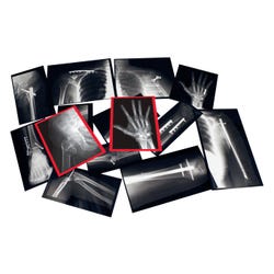 Authentic x-ray images show the hardware (plates, screws, nails, pins and wires) used to fix a broken bone. Includes 14 x-rays on cardstock up to 7 x 11 inches showing 14 broken bone images.Features