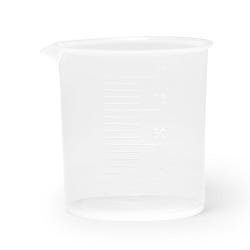 Pack of 12 Griffin-style beakers, each with a 100ml capacity. Molded in polypropylene, with excellent clarity and chemical resistance. Beakers feature pour spout and raised graduations on the outer surface. Designed to nest without sticking together. Autoclavable.