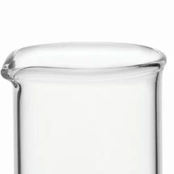 Pack of 12 beakers with 20ml capacity. Made from low-expansion borosilicate glass, these beakers feature heavy and uniform wall thickness, spouts designed for easy pouring, and beaded tops. Also include white printed graduations (from 5-15ml, at 10ml intervals) and a marking area. Tolerance for beakers is approximately +/- 5 percent.