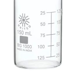 Pack of 12 beakers with 400ml capacity. Made from low-expansion borosilicate glass, these beakers feature heavy and uniform wall thickness, spouts designed for easy pouring, and beaded tops. Also include white printed graduations (from 50-300ml, at 25ml intervals) and a marking area. Tolerance for beakers is approximately +/- 5 percent.