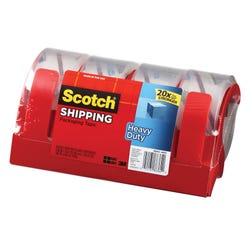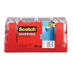 Scotch Heavy Duty Shipping Tape with Handheld RD-300 Refillable Dispenser has a 3 inch core, measures 1.88 inches x 54.6 yards and 3.1 mil thick. Tensile strength of 47 pounds. Tape is 20X stronger than acrylic packaging tape is resistant to splitting, bursting and moisture. Meets USPS and courier regulations for standard packages. Clear. Pack of 4.Features
