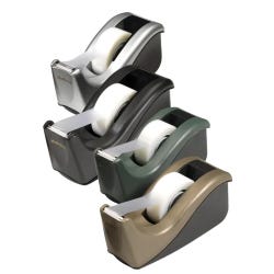 The Scotch C 60 Two-Tone Tape Dispenser offers a simple, long-lasting solution for the classroom, office, or home. It can accommodate tapes up to 3/4 x 1500 inches in size. Its sleek wave design complements any decor and the tub is attached so that it can't be lost. The non-skid base is heavily weighted to promote one-handed dispensing.Features