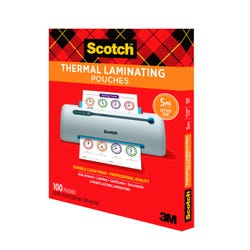 The Thermal Laminating Pouches from Scotch™ measure 9 x 11-1/2 inches to fit standard 8-1/2 x 11-inch, letter-size documents. The clear laminate is 5 mil thick to provide durable protection for your most important documents. It is an essential tool for the office, classroom, or home. This pack contains 100 pouches to provide lasting use from project to project.Features