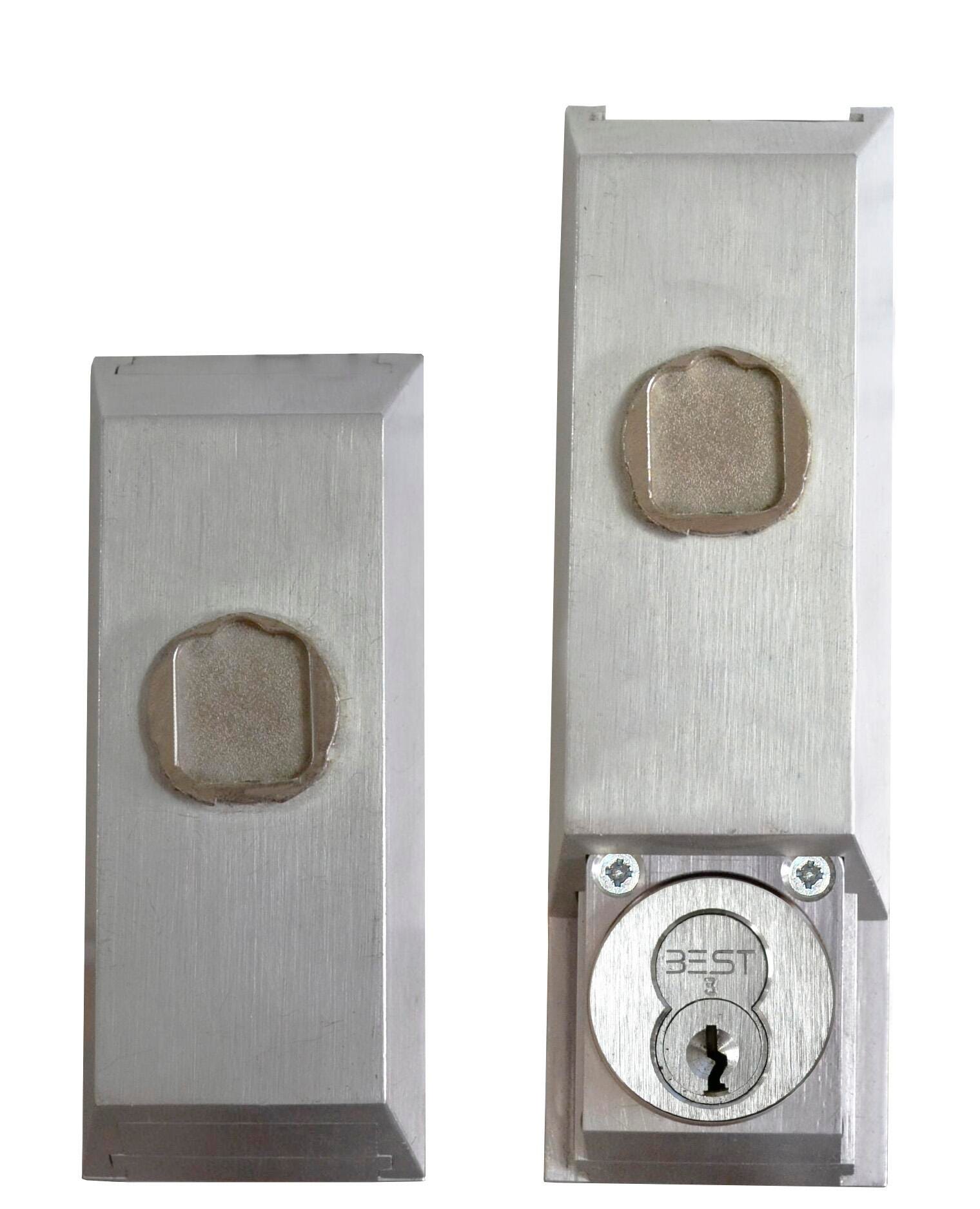 The first Guardplate to completely conceal the cylinder & keyhole, this cylinder protector installs over existing rim or mortise locks or exit devices and comes with 2 keys. Its sleek profile cannot be opened by ordinary magnets and shields the cylinder from attack by vandalism or picking. Clear aluminum finish, no wiring or batteries required.