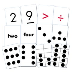 Students will love practicing numbers 0 - 10 with these essential cards! Use these 2-1/2 x 3-1/2 inch cards to reinforce number recognition, counting on, math facts, making 10, and comparing numbers. The collection includes 4 sets of numeral cards 0 - 9, 2 sets 10-frame cards 0 - 10, 2 sets subitizing cards 1-9, 1 set of number word cards zero - nine, and 2 sets of symbols +, -, x, ÷, <, > and = printed in color to help young learners differentiate. Plus we have included six cards of activity ideas making this collection totally essential. 110 cards total! Grades K-2