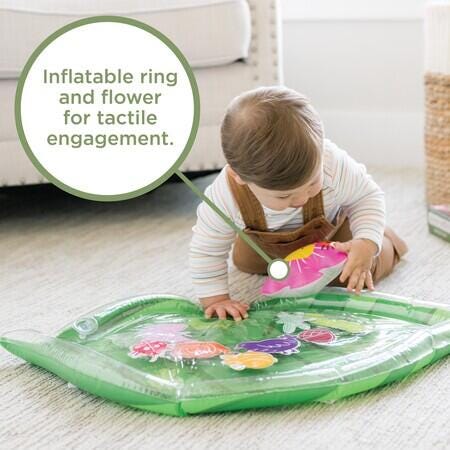 Float through the early stages of development on this inflatable leaf-shaped water play mat designed to inspire tactile stimulation and engage supporting muscles.