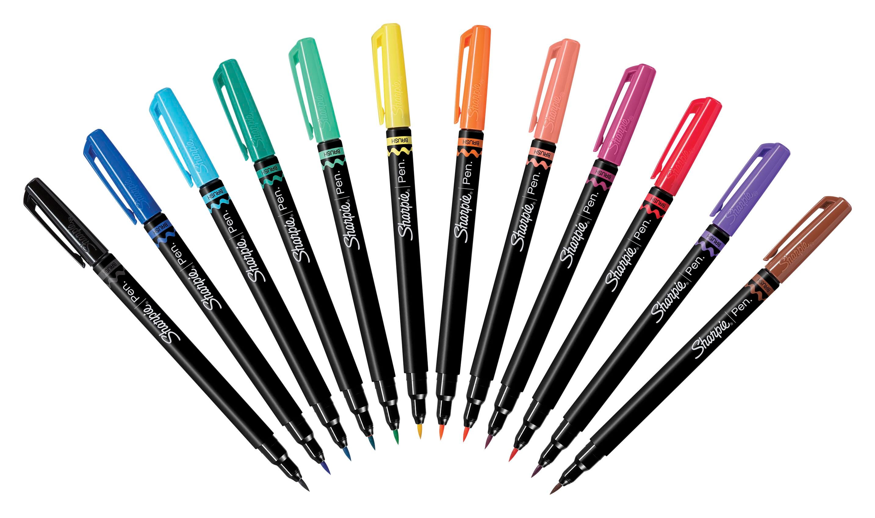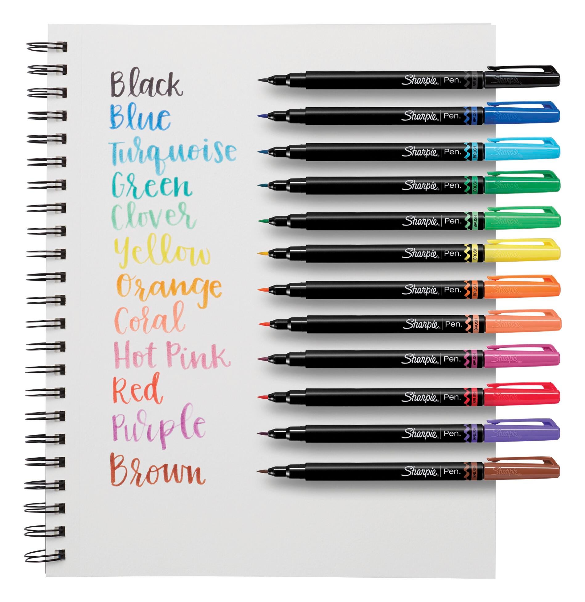 Sharpie Brush Pens push your creative limits. Featuring a smooth brush tip for incredible flexibility and control and a bold palette of vibrant colors to bring your creativity to life. Each brush pen has quick-drying ink that resists smearing and fading. An ideal tool for any drawing, sketching, or hand lettering project! This pack of art pens includes the following colors: black, blue, turquoise, green, clover, yellow, orange, coral, hot pink, red, purple, and brown.