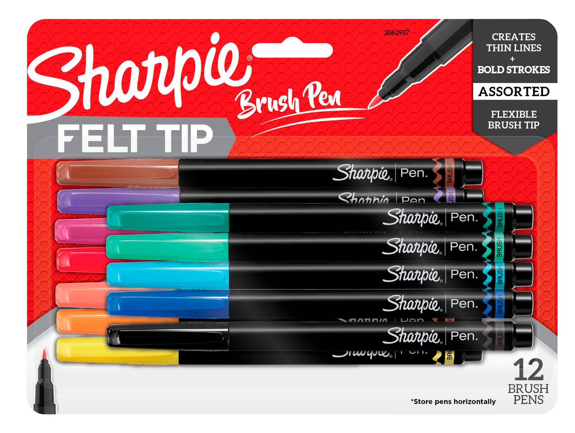 Sharpie Brush Tip Pens, Assorted Colors, Pack of 12