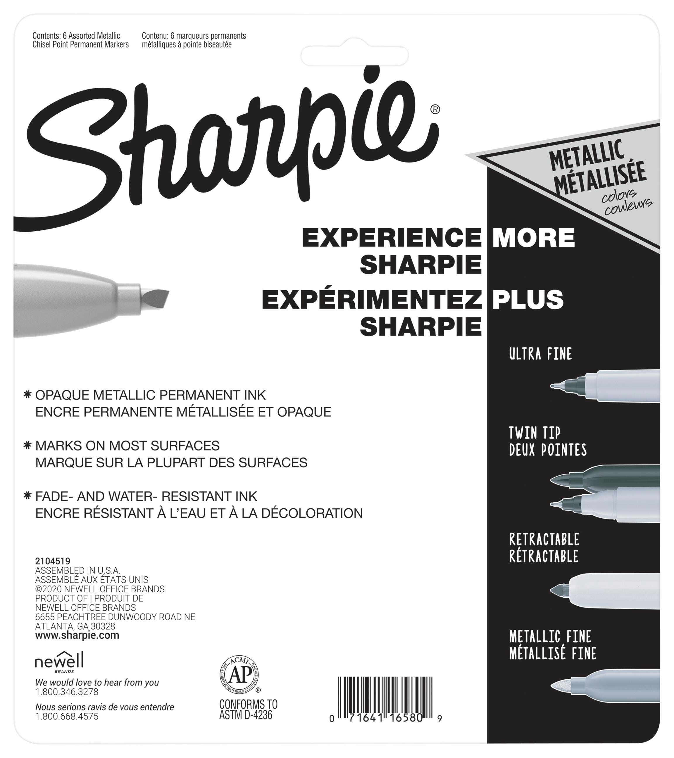 Sharpie Metallic Permanent Markers, Chisel Tips, Assorted Colors, Set of 6