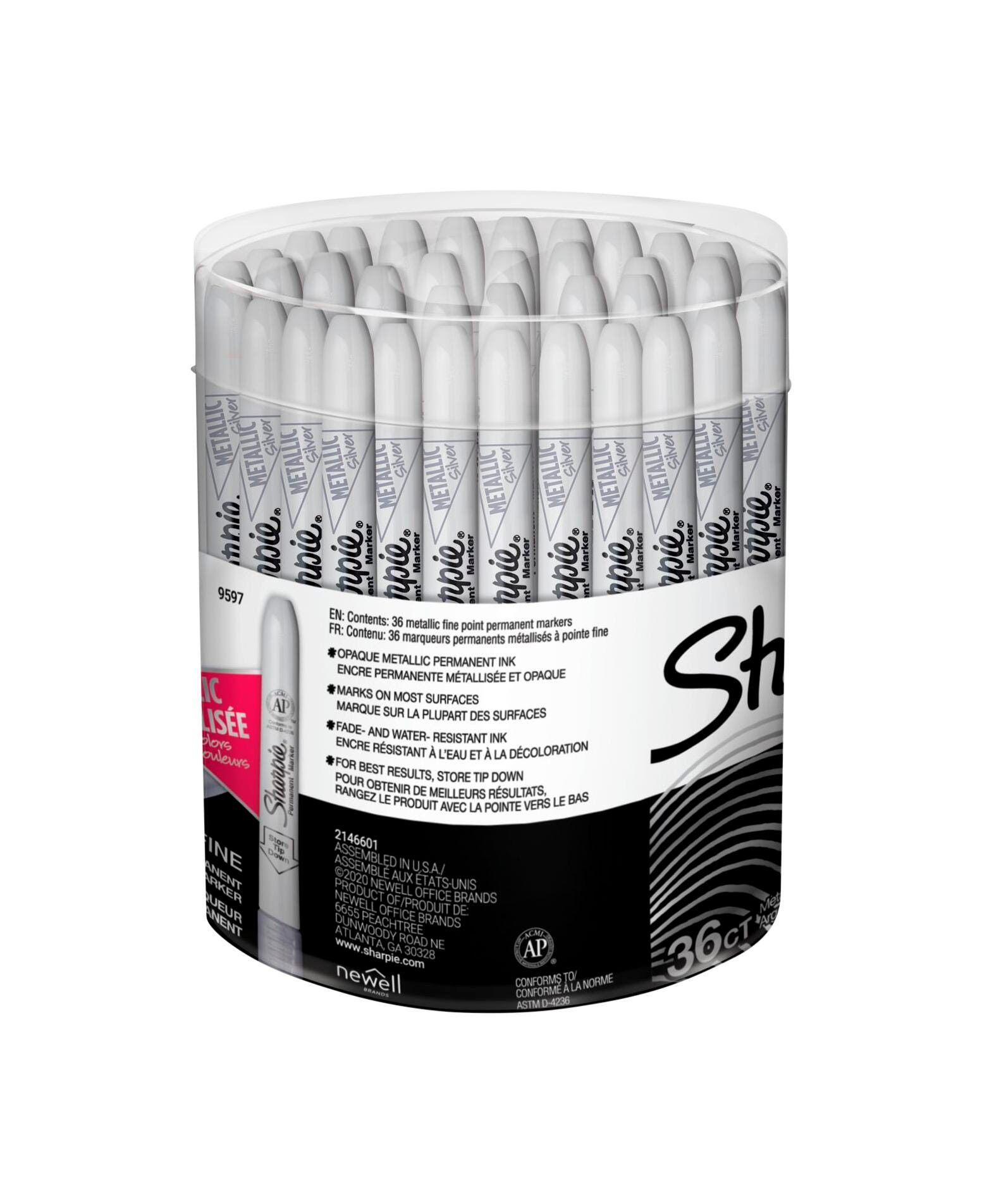 Sharpie Metallic Permanent Markers, Fine Tip, Silver, Pack of 36