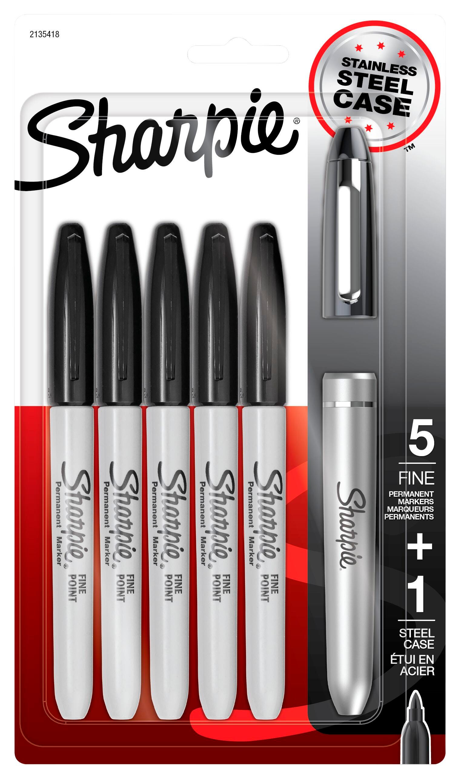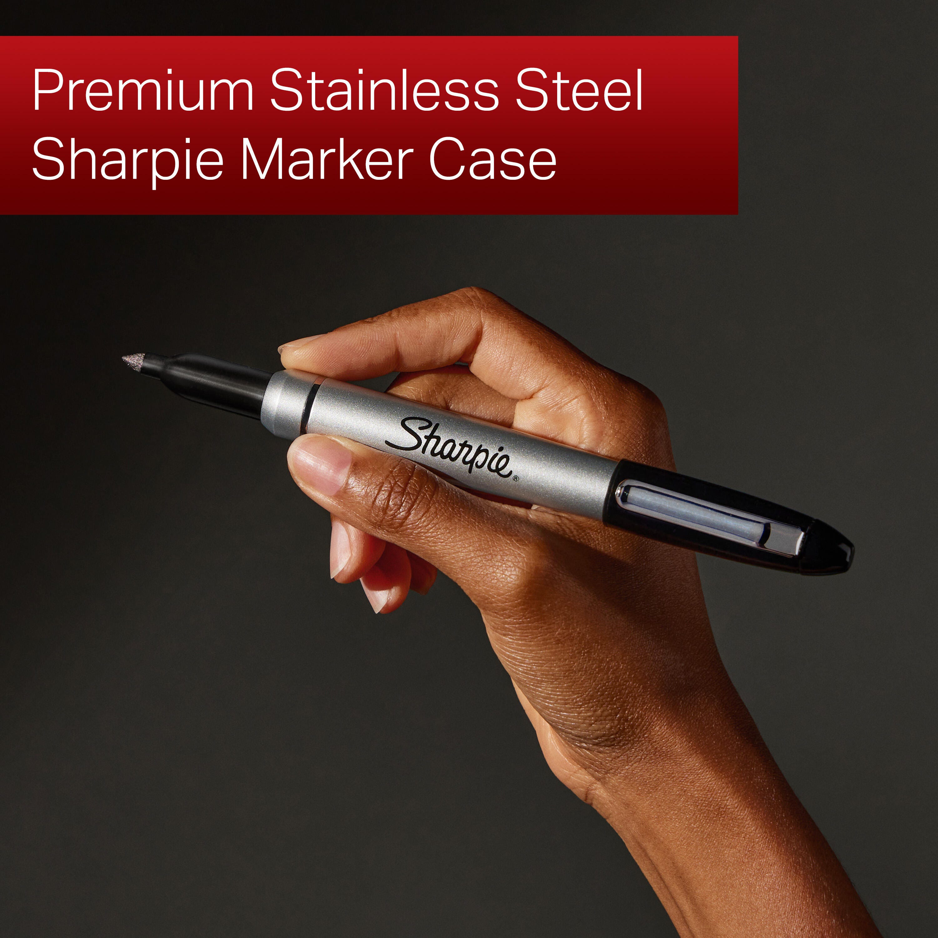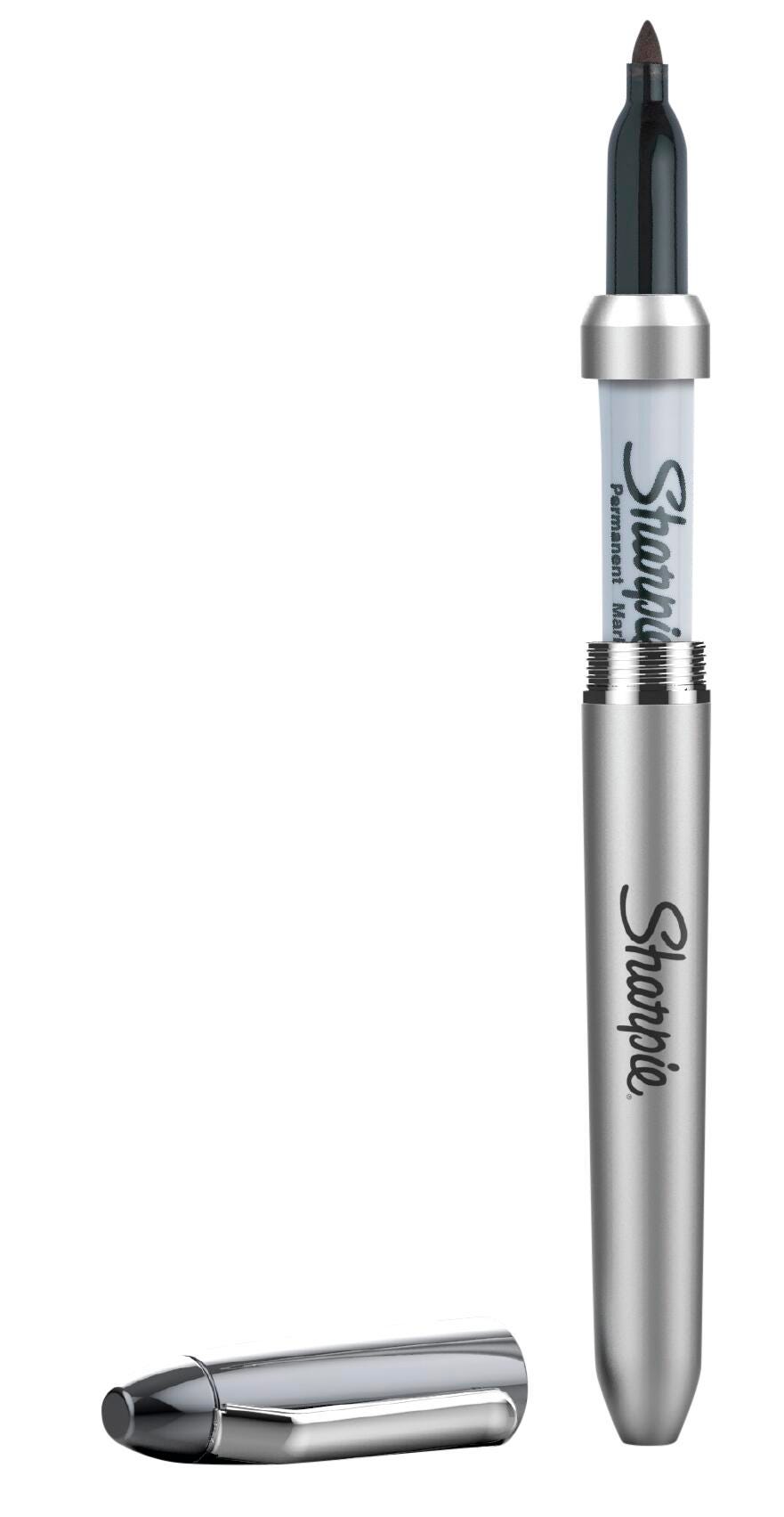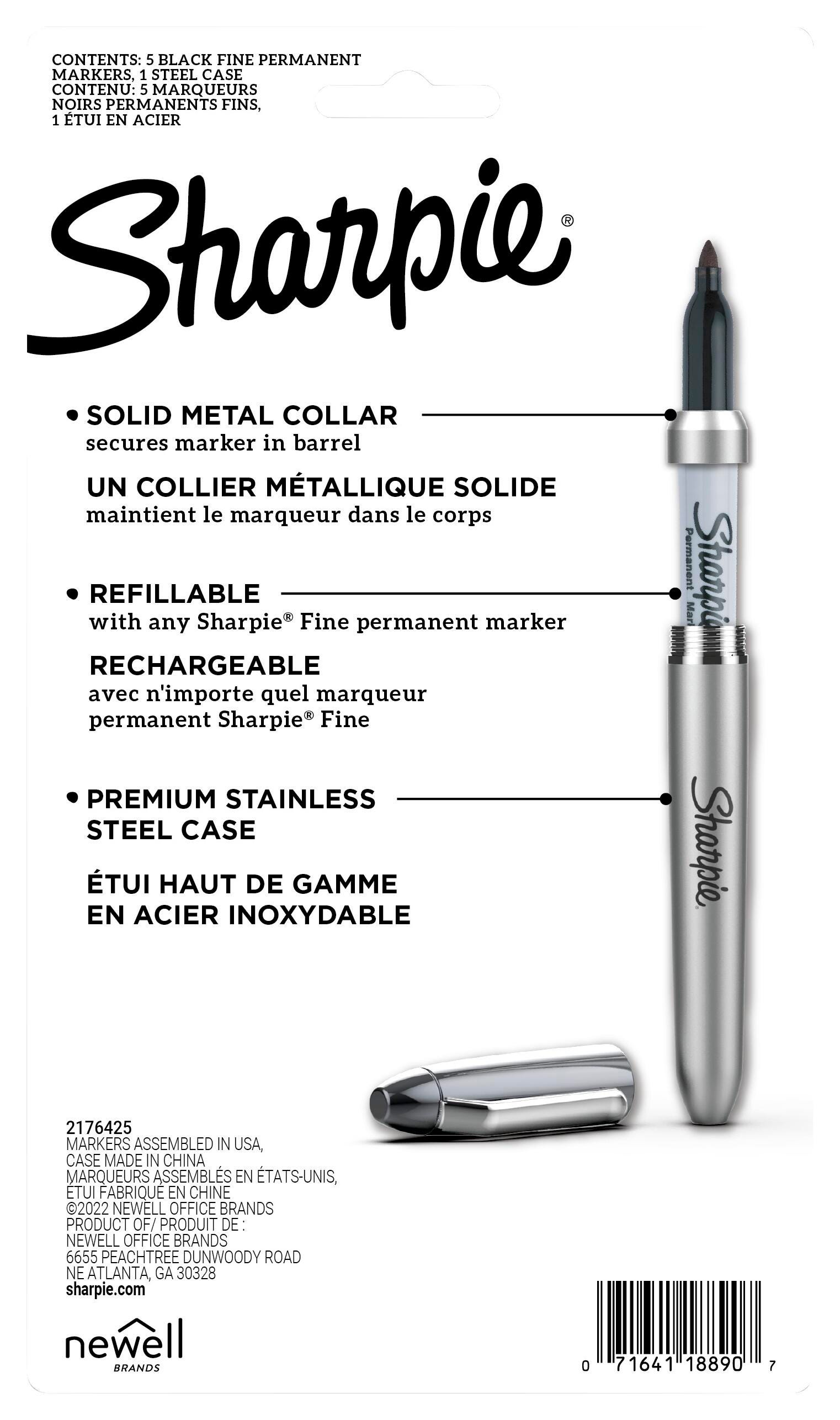 Take your writing to the next level with this set of permanent markers from Sharpie, featuring a stainless-steel marker case. These permanent markers feature the iconic permanent ink that marks on paper, plastic, metal, and most other surfaces! With a durable glossy finish, the premium marker holder elevates the writing experience and can be refilled with any Sharpie fine point permanent marker. Featuring a versatile fine point for bold marks, Sharpie permanent markers inspire you to transform the ordinary into the extraordinary.