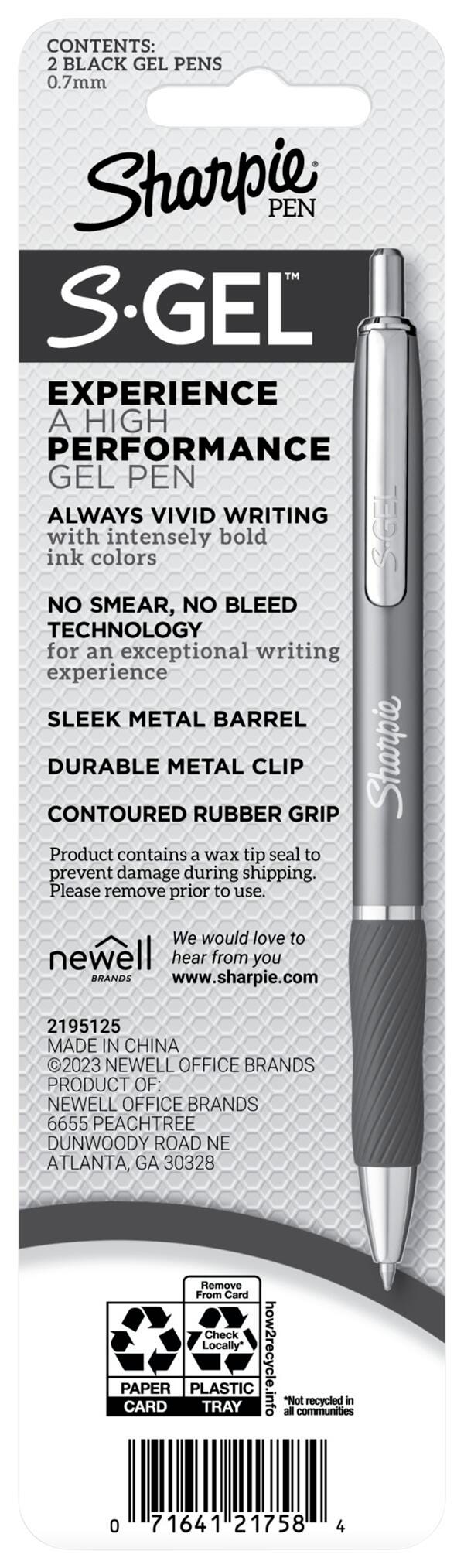 The power of Sharpie now comes in a gel pen Enjoy always-vivid writing with no smear, no bleed technology, and best-in-class black ink with the Sharpie S-Gel. The sophisticated Champagne-colored metal barrel and professional design are sure to stand out. Each pen is also equipped with a contoured rubber grip that ensures comfortable writing over long periods and a retractable 0.7 mm medium point that is perfect for a variety of everyday tasks. Rely on Sharpie S-Gel Pens for excellent writing in the classroom, home, or office.Features