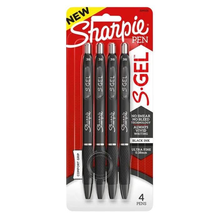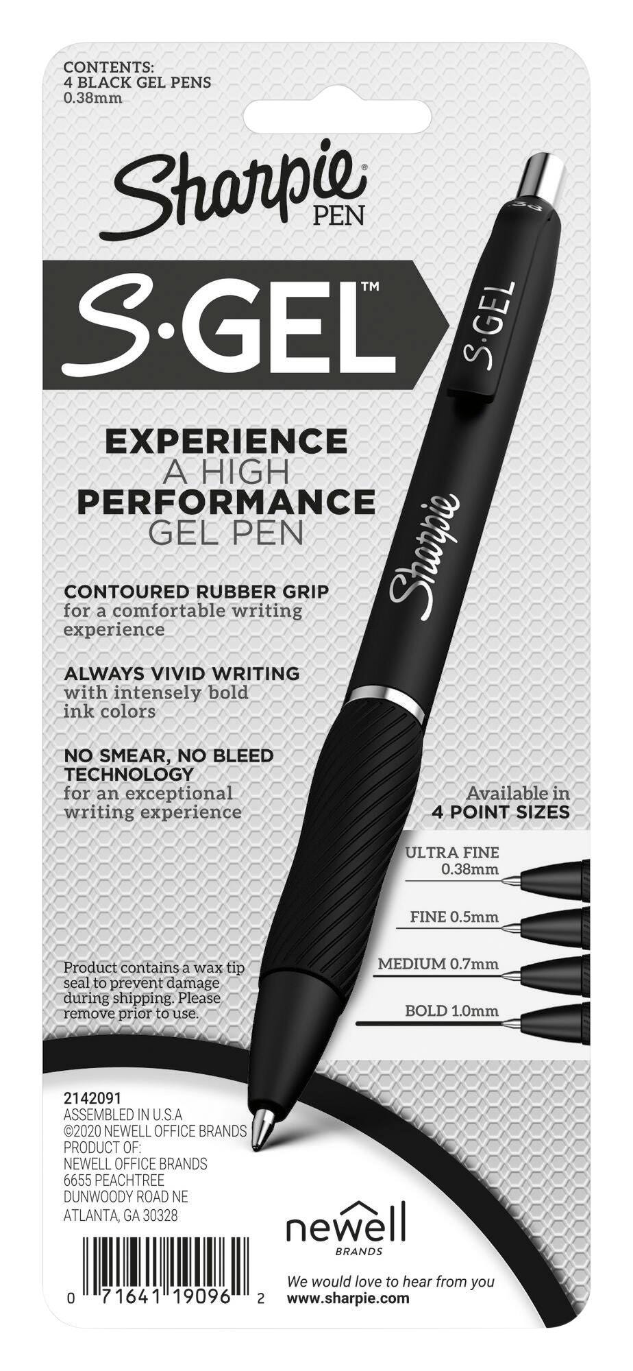 Sharpie S-Gel Pens, Ultra Fine Point, 0.38mm, Black, Set of 4