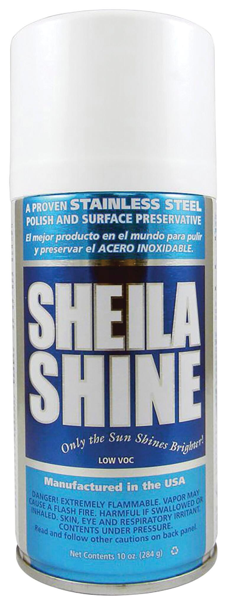 Approved for sale in the state of California, the Sheila Shine aerosol stainless steel polish and surface preservative provides outstanding results on all of your commercial, industrial, automotive and marine needs. Used by cleaning professionals in hospitals, shopping malls, airports, hotels, kitchens and more, Sheila Shine's unique formula also leaves a clean and polished look on chrome, aluminum, brass, porcelain, fiberglass and even leather. In one easy wipe, this powerful solvent-based formula cuts through grease and grime, leaving a polished and protected surface that actually eliminates streaking, prevents liquid penetration and resists finger marks. Regular use of Sheila Shine keeps a high-gloss appearance on your surfaces.Includes: