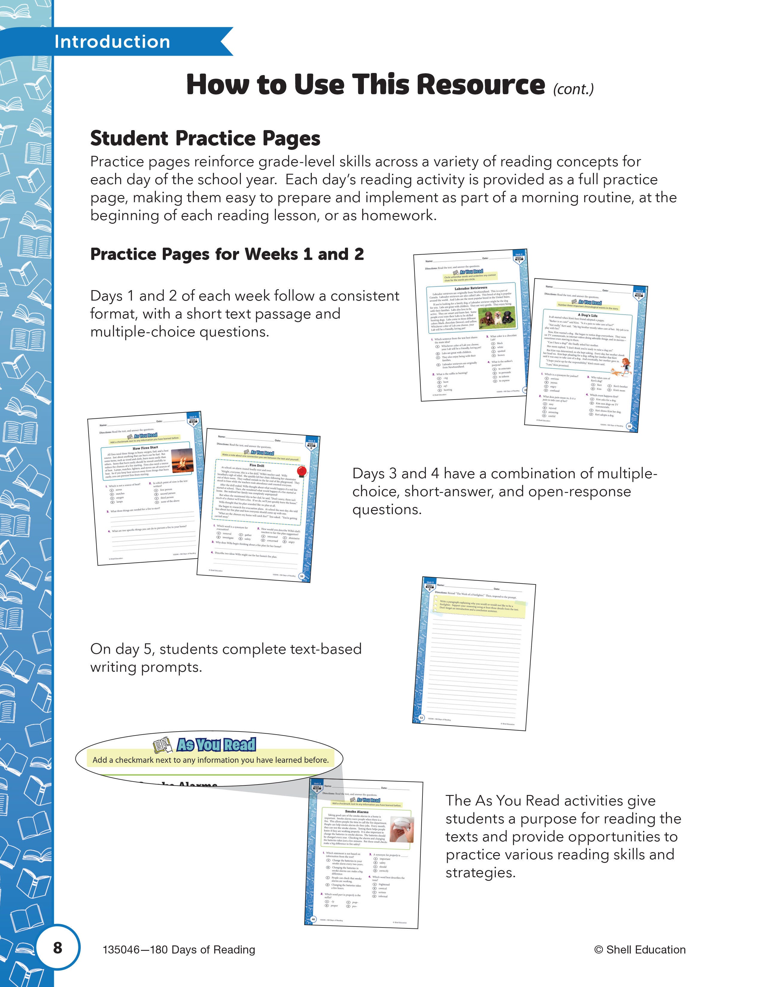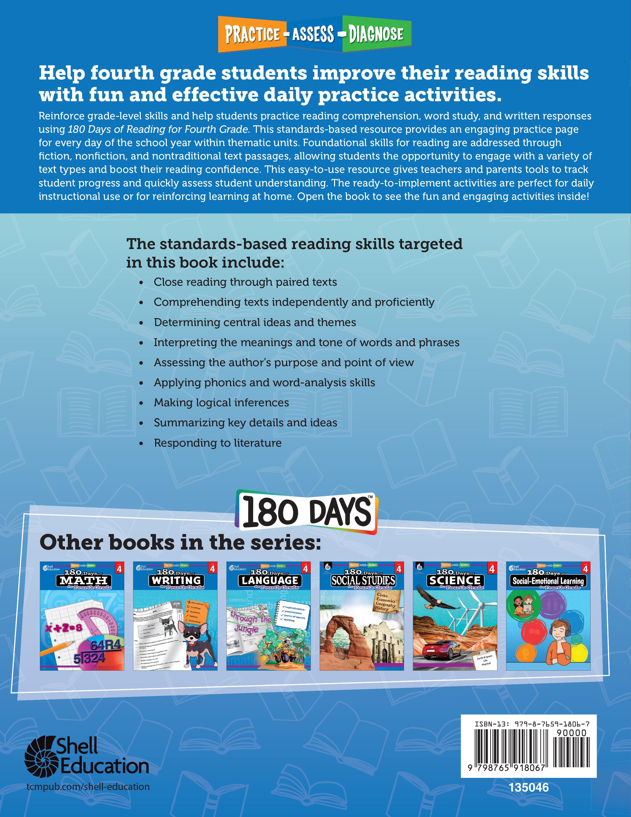This easy-to-use fourth grade workbook is great for at-home learning or classroom instruction. Help students learn to read and write more confidently with these standards-based learning activities. The 2nd Edition of this activity book incorporates thematic units and a combination of fiction, nonfiction, and nontraditional texts. The new edition also reinforces the connection between reading and writing by having students write about what they read. Parents appreciate the grade-appropriate reading passages and interesting topics that children will enjoy. The daily reading practice is perfect for homeschool, to reinforce learning at school, or to prevent learning loss over summer. Teachers rely on these workbooks to save them valuable time and address learning gaps.