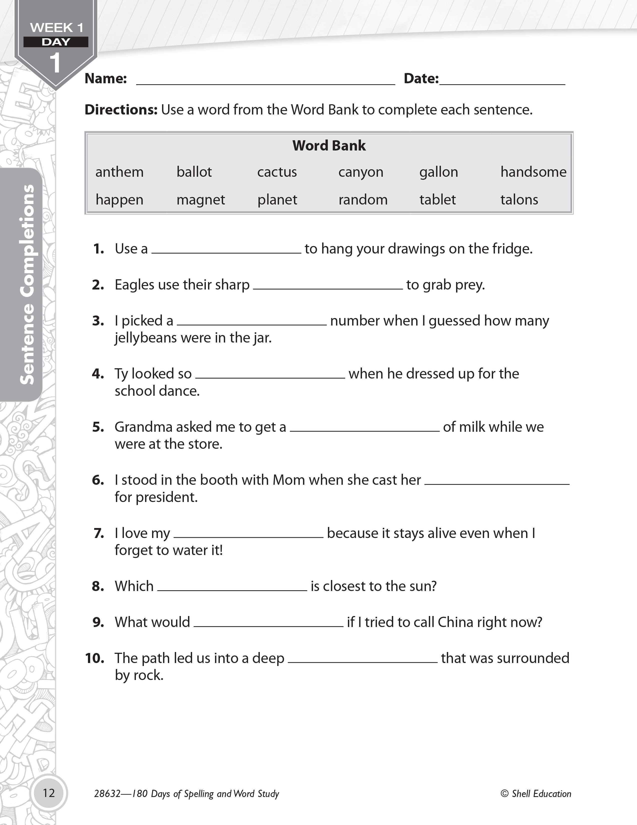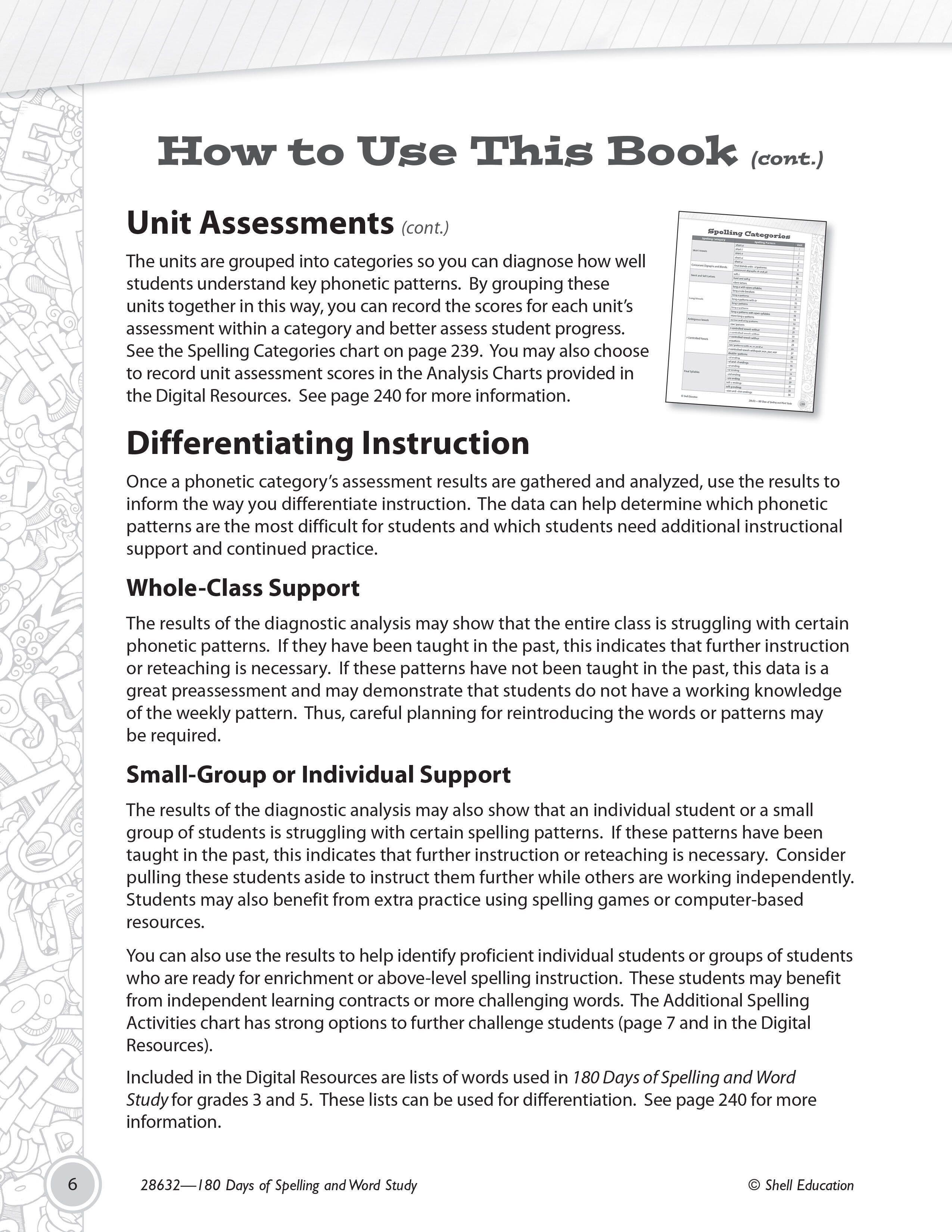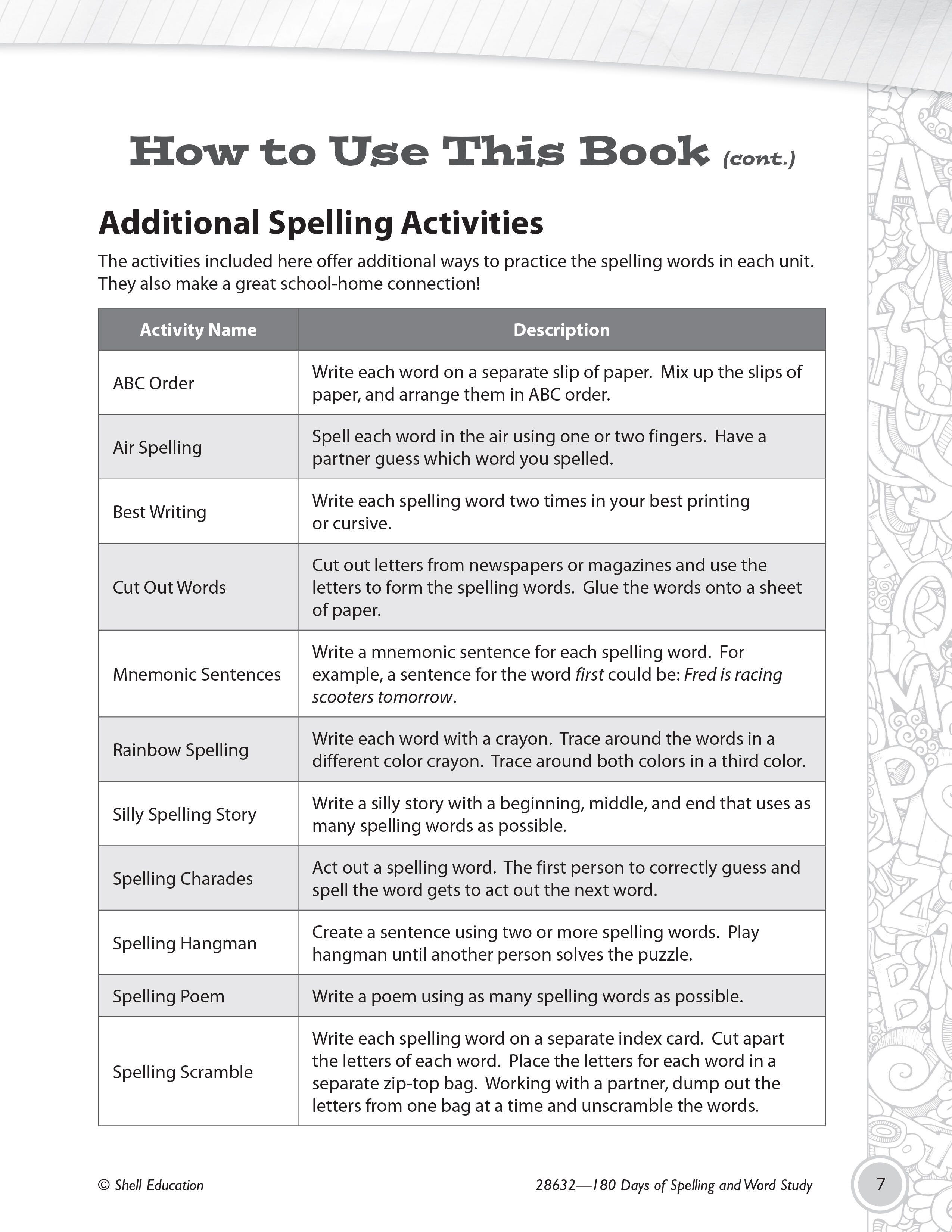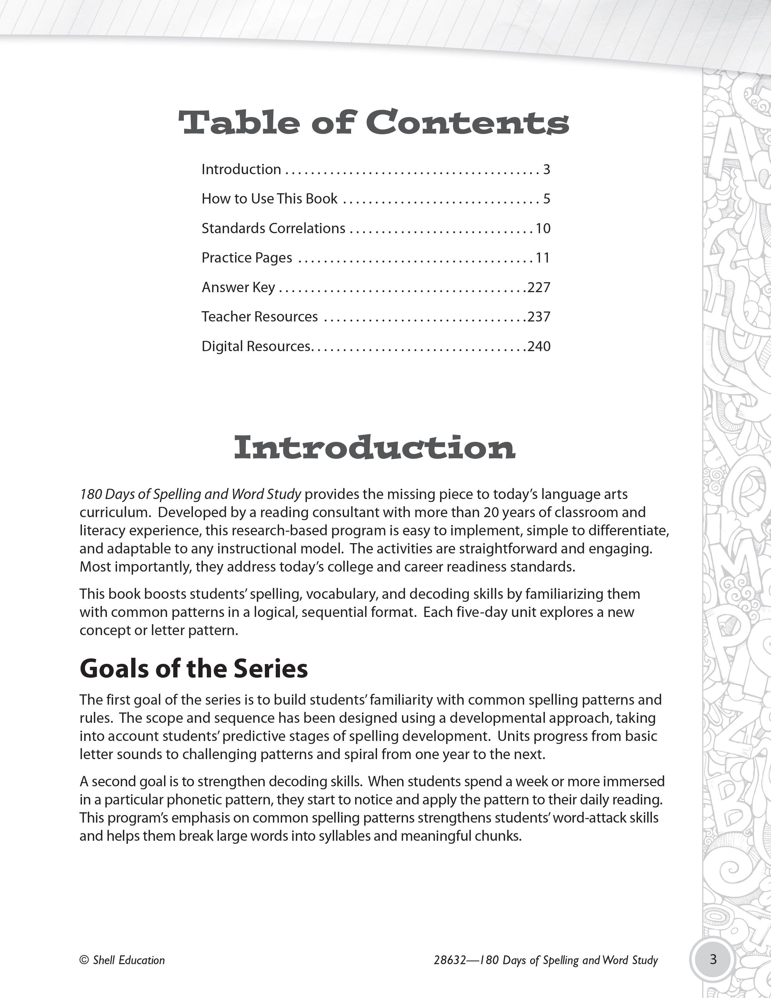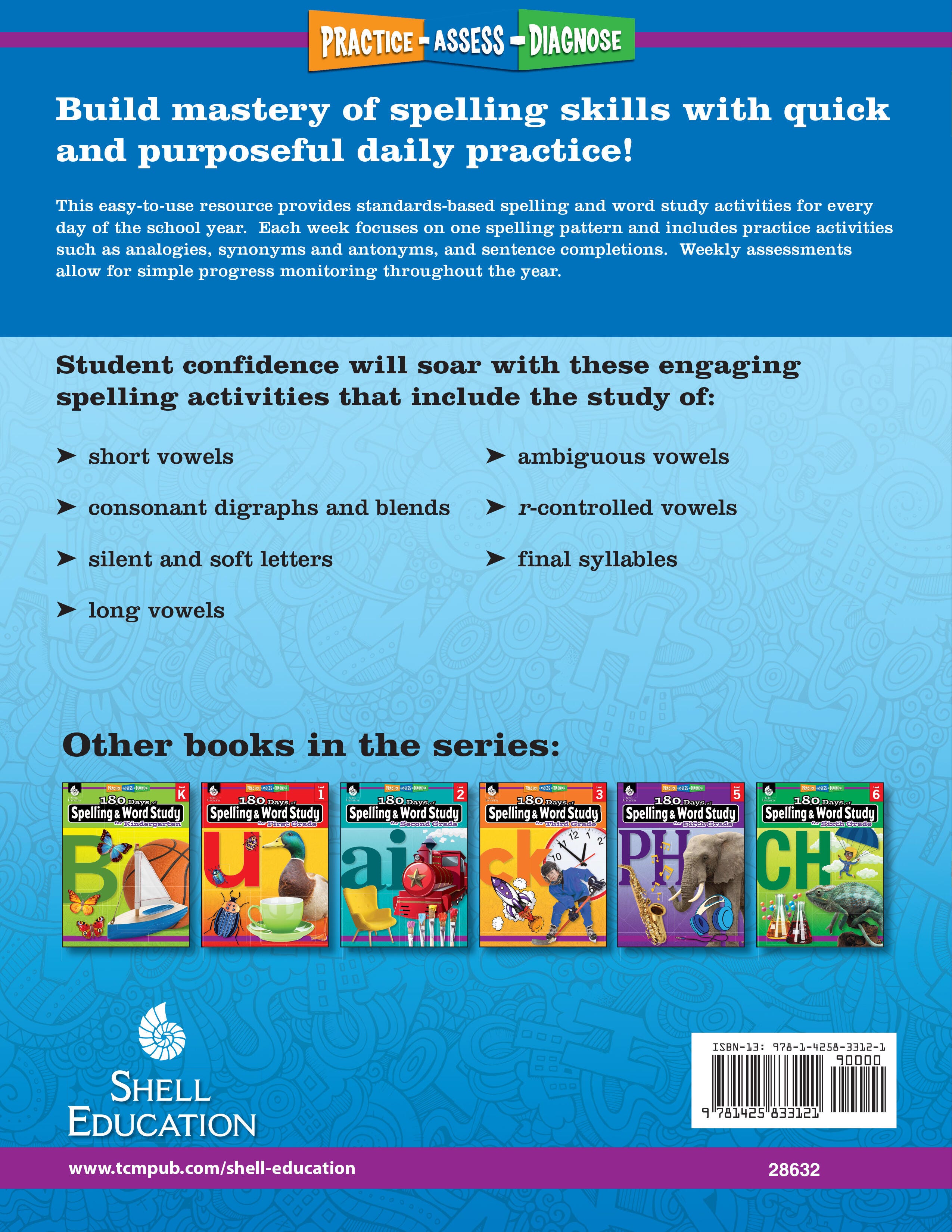 Supplement your language arts block with 180 days of daily spelling and word work practice! This fourth grade spelling workbook provides teachers with weekly spelling and word study units that are easy to incorporate into the classroom or home. Perfect for after school, intervention, or homework, teachers and parents can help students gain daily practice through these quick activities that correlate to state and national standards. Arranged into weekly units, the worksheets feature fun activities for fourth grade students such as analogies, homophones, sentence completions, sentence types, inflectional endings, prefixes, suffixes, roots, synonyms, antonyms, and more! The repetitive structure helps students focus on the words rather than the activities and allows for more independent practice. Provide fun, engaging, and purposeful practice for your students with this must-have student workbook that includes digital materials.
