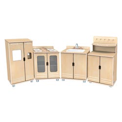 Jonti-Craft TrueModern Play Kitchen Set, Baltic Birch, Aluminum Feet, Set of 4