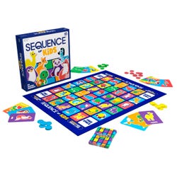 Jax provides an alternative way to play SEQUENCE that is engaging and fun! Play a card from your hand, then place your chip on a corresponding character on the board. Use a UNICORN card to place your chip anywhere. Remove your opponent's chip with a DRAGON card. When you have four chips in a row, it's a SEQUENCE and YOU WIN!
