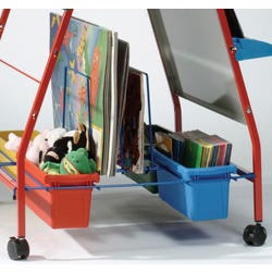 With room for two little learners, multiple independent and group lessons are a breeze. Features a front magnetic dry-erase board and a rear removable felt board. There are felt board hooks and snap-on chart paper. The ultra-safe premium book ledge locks into multiple positions. Below the easel, are tub racks with 4 small open tubs for lesson storage and a place for big books. Lifetime warranty on easel components and 5-year warranty on whiteboards.Features