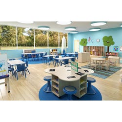 - Compact footprint fits neatly along classroom walls without taking up too much floor space